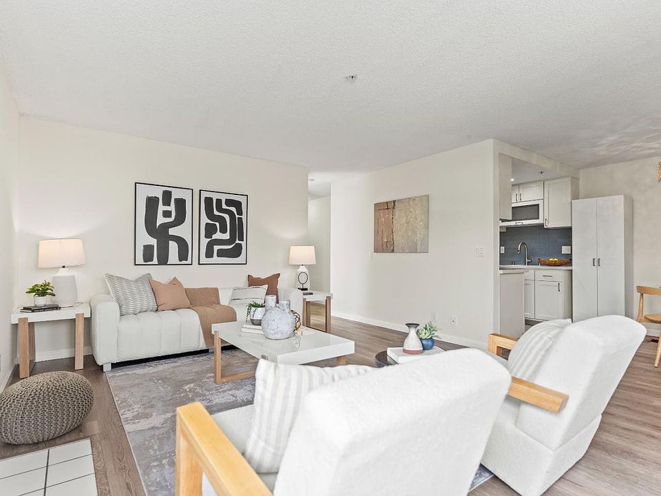 This spacious 2-bedroom, 2-bathroom condo features stylish laminate flooring and an updated kitchen equipped with white countertops, soft close cabinetry and stainless steel appliances. The primary suite boasts a walk-in closet and newly updated bathroom vanity, while the open-concept living area flows to a private patio ideal for relaxing or entertaining.