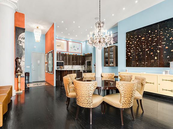 Chelsea Grand Loft - Rental in Iconic Pre-War CondominiumThis remarkable 1,512 sq ft designer loft is located in one of Chelsea's most prestigious full-service pre-war condominiums - a 19-story architectural landmark known for its grand proportions, impeccable service, and discerning residents, including artists, tastemakers, and notable New Yorkers.This one-of-a-kind, fully furnished residence is available for lease. Distinctive Character & ScaleA dramatic entry opens into a voluminous, gallery-like space with soaring 14-foot ceilings, original pre-war columns restored to their former elegance, and ebonized hardwood floors.