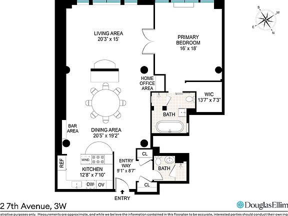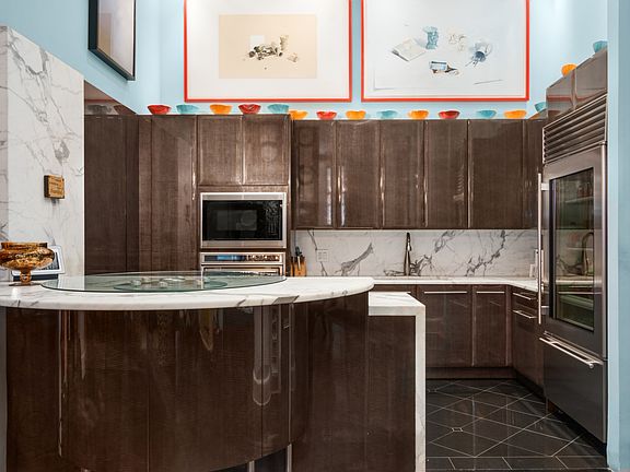 The central dining area comfortably accommodates eight around a stately round table-perfect for entertaining beneath the glow of the original columns. Chef's KitchenThe mint-condition custom Neff kitchen features: