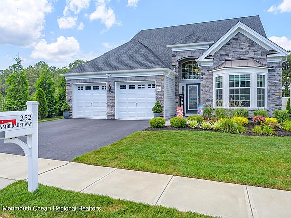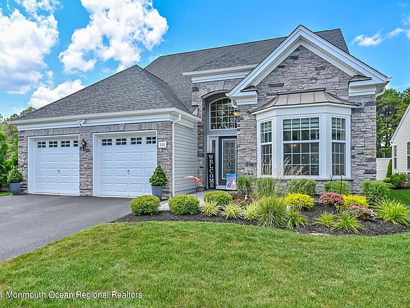 Beautiful 2 Bed 2 Bath Fairhaven model in the prestigious Sea Breeze at Lacey Community is ready & waiting for you! Enjoy luxurious Adult Community living with amenities galore, close to the sought after Jersey Shore! Lovely stone front & well manicured lot welcome you into a light & bright Foyer with elegant tray ceiling. Gleaming HW flrs, recessed LED lights, crown molding & lovely laminated windows with plenty of natural light throughout! Spacious, Gourmet EIK offers upgraded SS Appliances (range hood + pot filler included!), granite counters, garbage disposal & delightful breakfast bar. Sunsoaked Dinette space, too! Elegant Formal Dining Rm makes dinner parties easy. Extended Family Rm holds a cozy Gas Fireplace & French Door to the Covered Patio. Extended Master Bedroom boasts a tray ceiling, custom WI Clost & blissful ensuite bath with dual vanity & frameless stall shower. Each bath beautifully updated with granite counters & custom tile flooring. Extended 2nd Bedroom is great for Guests! Upstairs, a spacious Loft with Bonus Rm, perfect for a 3rd Bed, Home Office, etc. Large Finished Storage rm, too! Charming rear Patio backs to peaceful + private wooded views. 2 Car Garage, Ring Security Camera + exterior lights, wireless garage doors, thermostat & so much more! TRULY a MOVE-in-READY MUST SEE!