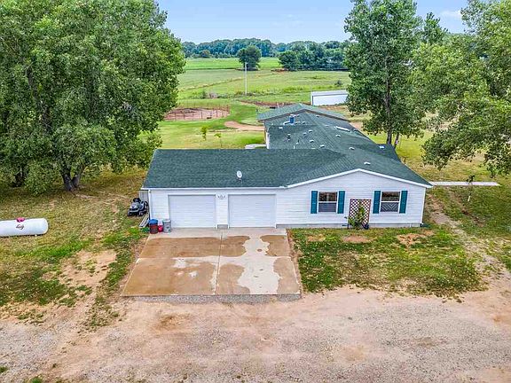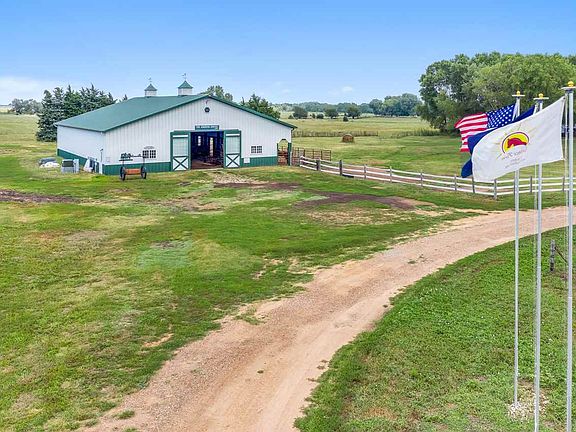 PRICED TO SELL! Beautiful, income producing property for sale just outside of Inman, KS. This unique, well-maintained, established, 31 acre horse farm has been the home of Sundance Farm for the past 20 years. Sundance Farm will continue providing equestrian activities for the differently-abled but they will be moving out of state, and are now looking for buyers who love this farm life. You'll fall in love with the sprawling 1950 sq. ft., one-level home with 3 beds and 2 bathrooms, vaulted ceilings and gorgeous skylights in the kitchen and master bathroom (equipped with remote control shades!) which flood the house with lots of natural light. The home wasn't only built with a view, it was built with a view from every room - you can see a horse pasture from every window! From the master bedroom, which opens to the beautiful, 325 sq. ft. covered deck, you have full view of the stunning, stocked, fenced pond, and the 60' round training pen (and you'll feel safe with Above ground storm shelter rated for EF5 tornado right off the master suite and another underground shelter at the other end of the house under the garage!). From Bedroom #2, you have a picturesque view of the 60'x72' Morton Barn, equipped with 6 inside stalls, outside runs, electric, water and full barn fly spray system. The house is surrounded by mature, healthy tress, set back off of the road and gated which all contribute to the home's additional privacy! Whether you want a stunning piece of land with a pond, not too far from city life, or you are a farmer at heart, or you have your own horses or cattle, or you want to start your own horse boarding facility, this property is a turn-key operation, move-in ready in every way and has so much income potential! This is a turnkey operation with many options to have this property pay your mortgage! At $300/stall, the impressive 11 stall (5 current, room for 11) Morton Building has income potential for $3500/month! Then you have the 6 paddocks (all with water hydrants and electricity) with room for 19 horses and at $200/horse/month, that is another $3,800/month! The north east side of the property north of the house also has adequate hydrants and electric stations for heated winter water to build corral panel pens for training horses, possibly as many as 8-10 horses. This is a one of a kind opportunity to own this income producing property! The sky is the limit! Come and take a look or call Susan today with your questions!