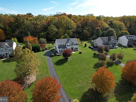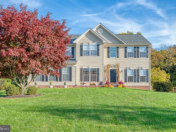 Nestled in the prestigious Rock Run Estates, this splendid 4-bedroom, 2.5-bathroom Colonial residence offers an array of desirable features and ample space. The inviting front patio sets the tone for a warm welcome. Upon entry, a grand 2-story foyer boasts hardwood floors, creating a striking first impression. French doors open into a versatile den/office, ideal for those seeking a private workspace. The main level showcases a harmonious blend of carpeted living and dining areas featuring crown molding and chair railing, adding a touch of elegance. The kitchen is a chef's dream, boasting rich cabinetry, granite countertops, stainless steel appliances, an island with a cooktop, and a pantry. Natural light floods the beautiful breakfast room, highlighting the vaulted ceiling and providing access to the outdoor patio for a seamless indoor-outdoor experience. For relaxation, the family room offers a cozy fireplace and a spacious layout, perfect for both intimate gatherings and entertaining. A convenient half bath completes this level. The upper level reveals a luxurious primary suite with an attached bath featuring a soaking tub, stall shower, double sinks, and a bonus space currently utilized as an office. The suite's coffered ceiling and double-sided fireplace exude comfort and style. Three additional bedrooms and another full bath cater to family and guests' needs, while a designated laundry area provides practicality. This property also features an unfinished basement offering endless possibilities, a fully fenced rear yard for privacy, a shed for storage, and a serene backdrop, backing to trees for a tranquil and picturesque setting. Don't miss the opportunity to make this meticulously maintained and spacious Colonial your new home.