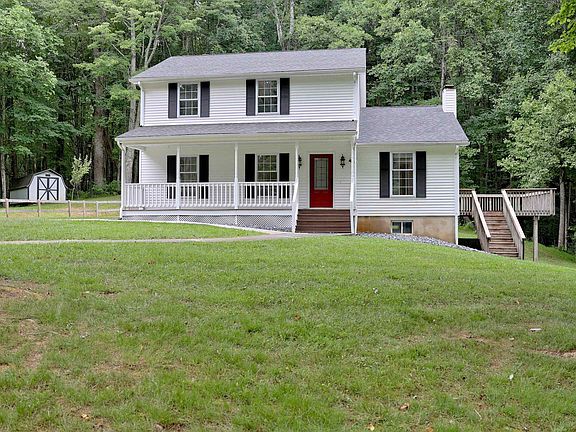 Very, very private 3 bedroom, 3 full bath home on over 21 acres w/covered front porch, rear concrete patio & side deck surrounded by your own personal forest of trees. There is fenced pasture/hay field ready for your horses, cattle & livestock. Creek that runs thru bottom of property too. Work from home with your own High Speed Fiber Optic Internet. Acreage includes 3 parcels of land including the main 17.21 acre parcel plus 2 additoinal building lots w/ a 2.2113 acre lot & a 1.8293 acre lot. There is garden shed & fenced garden space or fence dog run & large carport for your vehicles & farm equipment. Enormous living room for entertaining, a spacious kitchen w/ beautiful granite countertops, formal DR & beautiful views from every window. The full, unfinished, walkout basement has plenty of room for potential additional living space & storage w/ wood stove too. Hardwood floors throughout & just freshly painted. This hidden treasure is move-in ready. Call for your private showing today!