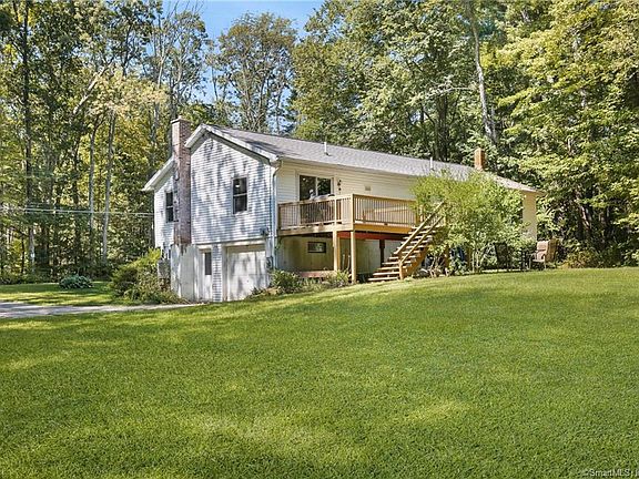 Welcome home!! Come take a look at this beautiful, oversized split entry home offering all the privacy you could ask for with wooded views on all four sides! This home is in a quiet neighborhood around the corner from Crystal Pond and is conveniently located approximately 15 minutes from I-84, Route 6, and the Massachusetts border, about 20 minutes from I-395, and only 5 minutes to Route 44! When you enter the front door, you'll find your large eat in kitchen straight ahead with a breakfast area to the left and a full dining room to the right that overlooks the deck and a gorgeous, level back yard. There is plenty of room to entertain in this home with its open floor plan! The living room and the primary bedroom with en suite are on opposite ends of the home and both offer mini split systems that cool off the whole house on those hot summer days! There are 3 bedrooms and 2 recently remodeled bathrooms that complete the main level with plenty of room to expand on the lower level. The lower level currently offers a finished, heated room with a closet as well as a large partially finished, heated room that could easily be turned into a recreation room or family room. The lower level walks out to the driveway and basement garage where there is a generator hookup. Come on out and take a look at this gorgeous, move in ready home today!