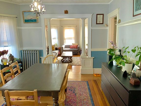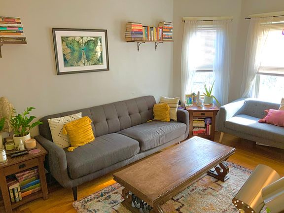 TUFTS UNIVERSITY within walking distance to this third floor, 2 bedroom/1 bathroom apartment. PET FRIENDLY (cats only). Open layout with good light and hardwood floors throughout. Fully applianced kitchen with island, gas stove, dishwasher, microwave and a large pantry space. Front OUTDOOR BALCONY and shared yard area for grill. Includes 1 off-street, tandem parking space and ample street parking with NO PERMIT REQUIRED. Rent INCLUDES SNOW REMOVAL (front steps to sidewalk) and ground maintenance. Shared coin-op laundry in CLEAN laundry room with additional storage space on the basement level. Available 5/1/2022. First and last month rent and broker fee due at lease signing (broker fee equals one month rent). NO security deposit. Pets allowed - CATS ONLY. No smoking. One tandem driveway parking space and unlimited street parking with NO PERMIT required.