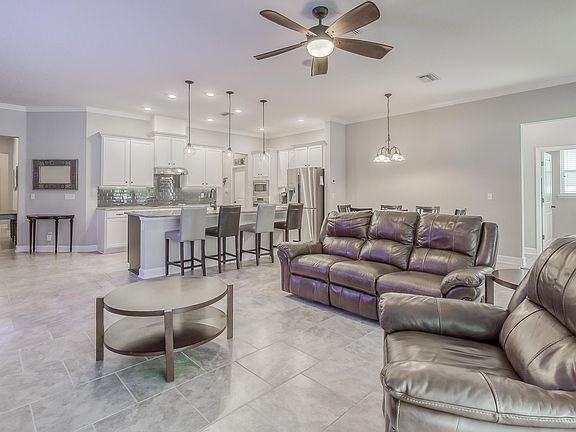 WELCOME HOME! Don't miss your chance on owning this adorable home. When you walk in you are immediately greeted with tons of natural light from your double slider glass doors which effortlessly lights up your kitchen/family room combo. Enjoy beautiful ceramic tile and luxury crown moulding throughout your living space. Gourmet kitchen featuring tiled backsplash and granite countertops featuring a breakfast bar perfect for those hectic mornings. Stainless steel appliances and white cabinetry give it the perfect appeal. Enter the spacious and stunning owners suite with huge walk in shower, giant closet, and bonus sitting area that leads out to the screened patio. The sizable yard is perfect for those summer backyard BBQs and cornhole tournaments.