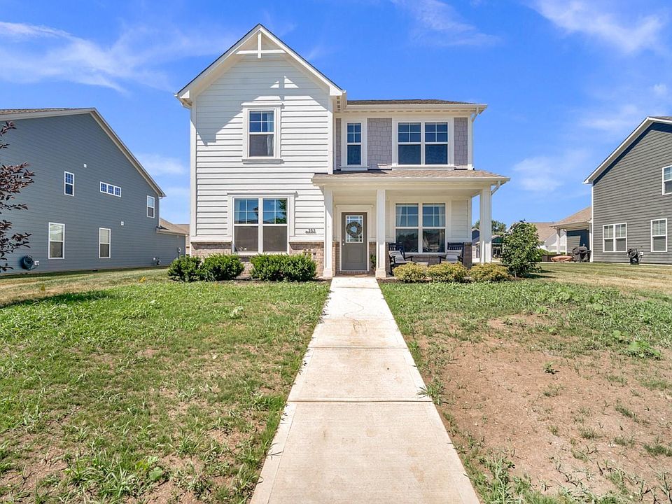 This 4 bedroom, 2.5 bath immaculate home is located in The Preserves of Bridgewater and is absolutely stunning! As soon as you open the front door, you will find an abundance of stylish features and finishings throughout the almost 2,500 square foot home. The spacious great room provides a ton of natural light, fireplace, and opens to the amazing kitchen that offers appliances, island, a cozy dining area, and a cute walk-in pantry/coffee bar! The den is a bonus for a homeowner along with the welcoming living room. Rounding out the main level is a large mud room with a half bath that leads to the 3-car garage. The second level includes a master suite with a private bathroom that has a shower, dual sink vanity, and walk-in closet. The three other bedrooms are quite airy, and the laundry room is adjacent to the bedrooms. Finally, enjoy the peacefulness of the covered porch just off of the kitchen area! All of this is located on the south end of Kokomo and in the Western School system!
