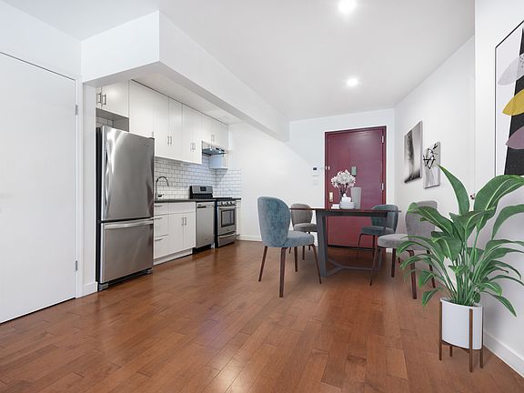 This one bedroom unit features stainless steel appliances, a modern kitchen & bathroom and hardwood flooring throughout. The unit is situated in a newly-constructed, seven story development consisting of 30 residences. Amenities include indoor garage parking (for an extra fee), bicycle storage, a laundry room and a communal roof-deck. Positioned on Broadway and Havemeyer St, 252 Broadway is just a block from the Marcy Ave JMZ subway.