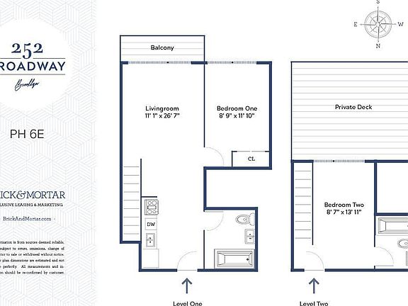Welcome to 252 Broadway, a recently constructed, seven story, development consisting of 30 one & two bedroom residences. Positioned on Broadway and Havemeyer St, 252 Broadway is just a block from the Marcy Ave JMZ subway, perfect for quick, direct access into Manhattan. PH6E is a South-facing two bed/two bath duplex unit which offers both a private balcony & roof terrace, ideal for entertaining. Details include stainless steel appliances, a dishwasher, stone kitchen counter top and white subway tile backsplash. Bicycle storage and laundry can be found in the garage level; parking is available for an additional monthly fee. Tenant is responsible for all utilities.