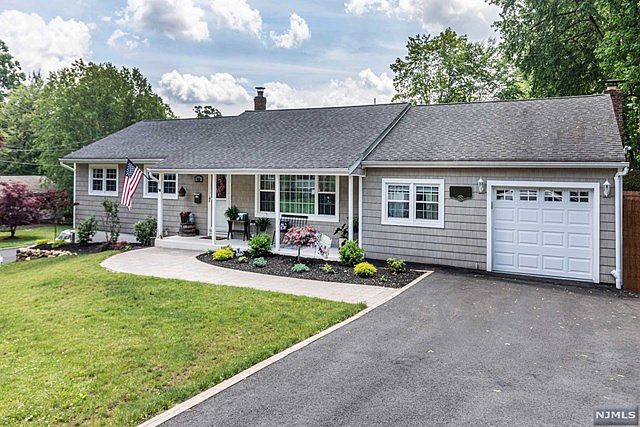 This sprawling updated ranch on quiet street is perfection! Breezy front porch welcomes you to open floor plan, living room & dining room with hardwood floors and granite & stainless kitchen with breakfast bar. Enjoy one floor living with four bedrooms, 2 new baths, 1st floor family room and beautifully finished rec room in basement and one car garage. You will never want to leave your private, lushly landscaped resort like yard with sparkling pool. Convenient to top rated schools and NY transportation.