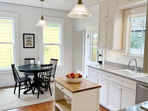 This gem has been owned, loved and carefully maintained by the same family for forty years. Preservation of the historic home has been the long term goal, while creating a light, comfortable and very livable space. Nine-foot high bead-board ceilings and large original windows bring light and views of the garden to the interior. Refinished 135 year-old Douglas fir floors lend a warm, rich quality to the rooms.