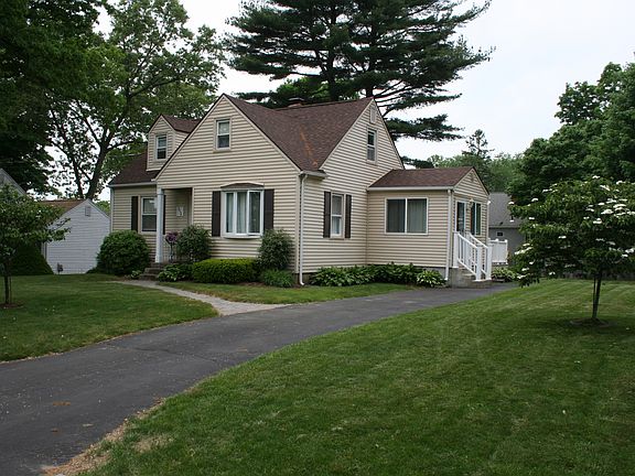 This 4 BR Cape is Gorgeous inside and out and in an Awesome next to the East Longmeadow/Longmeadow line. Everything has been professionally updated and is fully equipped with low-maintenance items. It has Central air, Eat-in Kit with all the updates including premium cabinets, gas stove & refrigerator only 5 years old. Living Room has a Bay Window with hardwood floors throughout the first floor. There are 2 BRs on first floor & 2 bedrooms on second floor with built-ins that have been recently redone. 2nd bath could be installed on second floor with pipes just below (APO). A new roomy professionally built storage shed adds to the convenience and is to remain. An in-ground irrigation system maintains an impeccable lawn. Furnace is approx. 10 years old. Newer windows and large exterior doors maintain the energy efficiency of this house. The neighborhood is perfect for families and is safe and walk able.