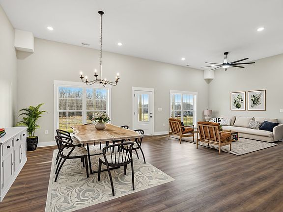 New Price and Backyard has had grading work completed! **Looking for a new construction home, but don't want to wait for it to be done? Step inside where modern elegance meets country charm. Nestled in a peaceful setting just 20 minutes from Lawrenceburg and 30 minutes from downtown Columbia, this home offers the perfect blend of tranquility and convenience. This thoughtfully designed open floor plan offers 12 foot ceilings with classy finishes, including sleek black light fixtures that add a touch of sophistication to every space. This home is perfect for entertaining with granite countertops and an oversized island. Car enthusiasts or those needing extra storage will enjoy the garage with 10-foot-tall doors providing ample space for vehicles, equipment, or recreational gear. Enjoy the beauty of nature from your covered patio, where you can unwind and take in the peaceful surroundings. Schedule your private showing today.
