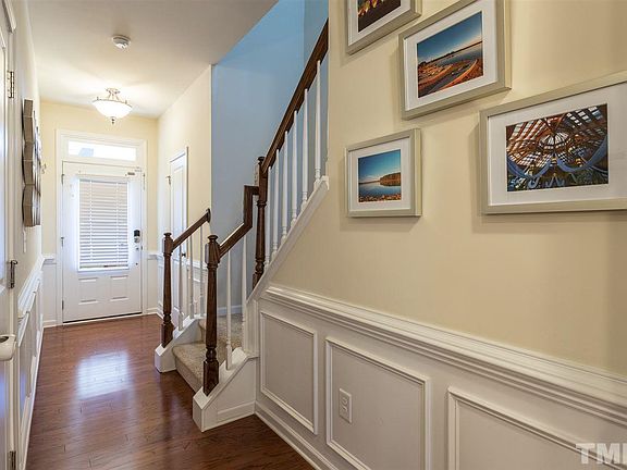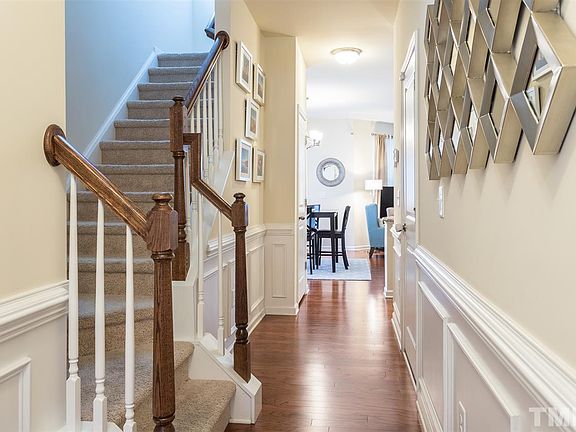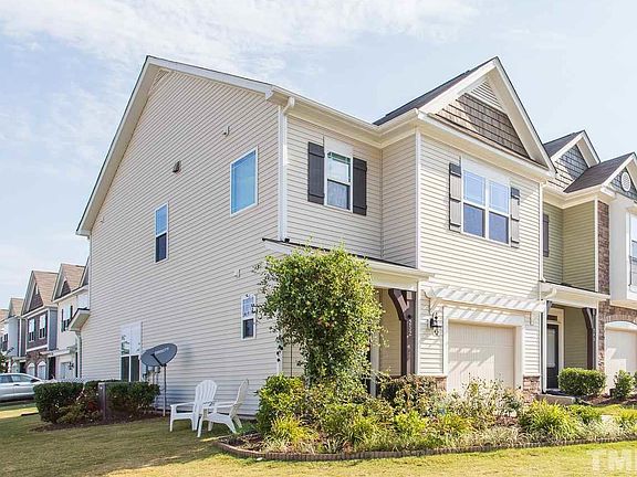 Gorgeous End Unit Townhome in prime Morrisville location. Beautifully landscaped and HGTV style decorated. Welcoming foyer with moulding opening to beautifully upgraded Kitchen, dining area and living room. Hardwood on the entire main floor. Kitchen w/ espresso cabinets, tile backsplash, SS appliances. Second floor boasts spacious Master bed with dual closets. Master bath with separate tub and shower and dual vanities. Also, 2 secondary beds and laundry room. Screened porch with perfect setting! Must see.