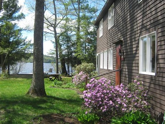 LAKE MONOMONOC, RINDGE NH. YEAR ROUND WATERFRONT. If you love comfort-don't miss this 3 bedroom 2 1/2 bath waterfront home. Views of sunsets from your own beach. Lovingly cared for over the years. Spacious 14x23' living room lined with sliders that exit onto an open deck with hot tub. Large open kitchen with dining space for casual meals. Formal dining room with built in glass wall unit to store extra dishes and linens. Family room with built in wall unit. Decorative propane gas stove to warm you on chilly evenings. Three large bedrooms plus additional room for office/craft use. Master bedroom with 2 large closets and views. Master bath room has his & her sinks, walk in shower and linen closet. Covered walk way to the over sized 2 car garage. Finish heated 15x28 recreation room above garage for a rainy day get a-way. Extra storage for seasonal items. Dock will remain. LEVEL SANDY BEACH. This home is tailor made for FUN.