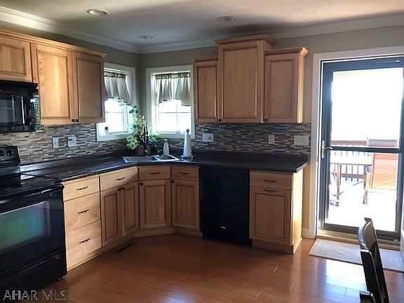 Spectacular 1 story 3 Bedroom 3 Bath open floor plan with loads of updates like Crown Molding throughout, formal Dining Room with decorative Columns and detailed chair molding. Hardwood floors in kitchen, Dining and Living Rooms. Spacious kitchen with Island. maple cabinetry with under cabinet lights and tiled backsplash. Split bedroom floor plan with Master on one side and bedrooms on other end. Covered rear deck with views of country side. Finished basement with 3/4 bath, large family room with 150 inch projection screen TV also a finished bonus room could be used as a Bedroom/Office and has a walk-in closet. Utility room with overhead garage door on lower level to store mower, tools, ATV, etc. Also 2 car heated attached garage on main level with epoxy floor. All furniture is neg