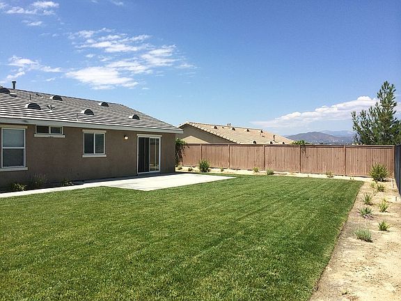 Beautiful newer home in Seneca Springs with fantastic backyard views of San Gorgonio, San Jacinto Mountains and pass areas. Elevated home location allows sweeping views from the backyard to the east, north and south, with privacy from adjacent residences. Four bedroom, two bath home with open floor plan. Kitchen features center island, gas range with microwave vent hood, built-in dishwasher and window over kitchen sink looking into back yard and awesome views beyond. Interior separate laundry room and pantry storage, attached two car garage with side door access. Fully landscaped and irrigated with backyard featuring custom concrete patio deck, large lawn play area and surrounding shrubbery.