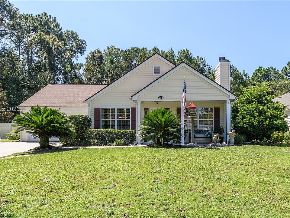 This adorable 3 bedroom home is situated on a quiet cul-de-sac with wooded views. Home boasts one of the largest home sites in Edgefield with fully fenced yard. Open concept floor plan with vaulted ceilings in dining room and great room featuring glass enclosed fireplace. Spacious owners suite offers large walk in closet and en-suite bath. Extra mud room off of kitchen attaches to garage and back porch. Additional storage has been added to garage with pull down stairs. Centrally located to schools, shopping, entertainment and more. Quick drive to Old Town Bluffton, Hilton Head beaches, & Downtown Savannah. WELCOME HOME!