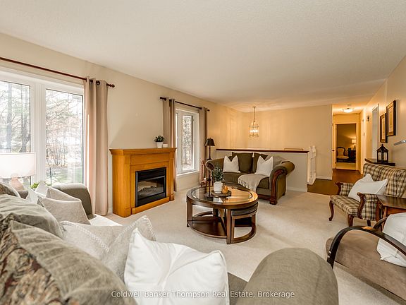 Incredible opportunity to own this beautiful family home set on 1.76 acres of privacy on Fowlers Road in Huntsville. Features include 4 bedrooms, 2 1/2 baths & 2,912 sq.ft. of well maintained living space on 2 levels. Spacious & sunfilled living room, formal dining room and gorgeous eat-in kitchen with walk-out to rear sun deck offer great entertaining space. The large primary suite features a 5-piece ensuite & WIC. Guest bedroom & 3 piece bath complete the main level. The fully finished lower level boasts a cozy woodburning fireplace & bar area in the family room with W/O to patio & park-like back yard. 2 guest bedrooms, 2 pce powder room, laundry, utility rooms & loads storage space provided on this level. Convenient access to the attached 2-car garage from the laundry room. The level well treed lot provides great privacy & is set back from the road. Gorgeous perennial gardens and a lovely welcoming front porch greet you as you drive up the very private driveway ~ truly a gem waiting for the next family to love & enjoy!