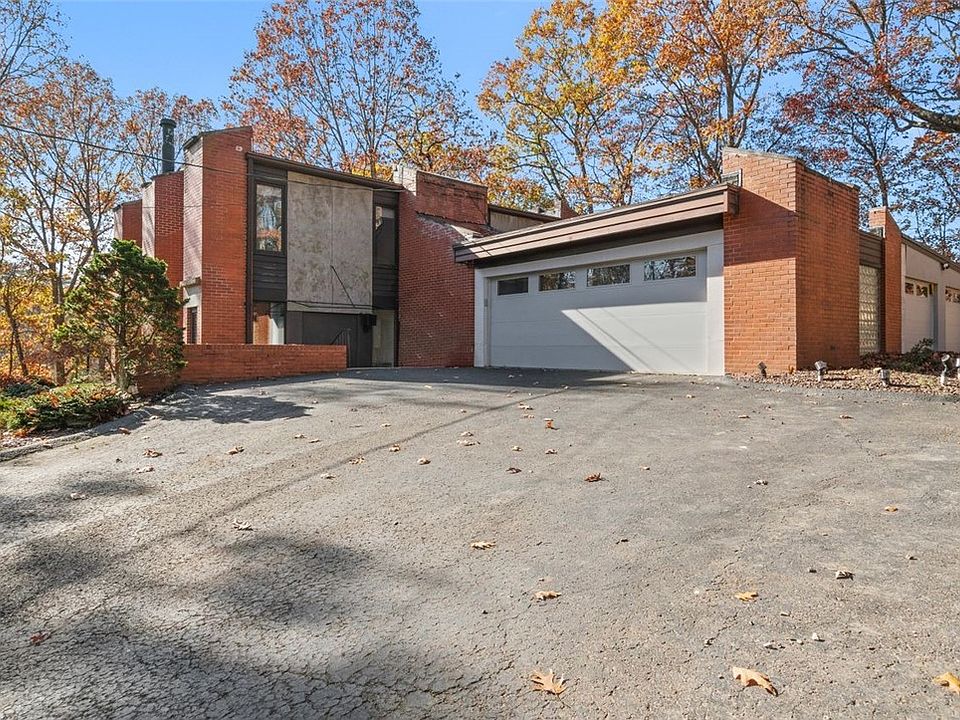 This unique home, done by the famous architect, Tasso Katselas, designer of PIT Airport, Carnegie Science Center, & other contemporary homes in the area, is sure to impress. Exposed brick & beams blend seamlessly into the serene landscape surrounding the property thanks to the use of large windows on the 1st floor. Upon arrival you'll be taken back by the mid century modern design. An open concept layout provides endless possibilities for the use of space on the 1st floor. The kitchen boasts modern cabinetry that compliments the contemporary design. With 1 acre on a cul de sac lot, the property offers privacy & tree-lined views off the rear of home. Residence boasts 3 generously sized bedrooms & a spacious master bedroom with ensuite bath & walk-in closet. A 4 car attached garage provides ample space for vehicles & storage. Home features solar panels, back up gas generator & battery power wall ensuring you always have power. If you are looking for a 1 of a kind home, this is it!