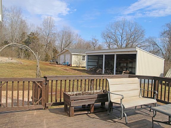 BEAUTIFUL restored farmhouse on 7+ acres in Campbell County with Seneca Creek frontage on the back property line where your family can enjoy fishing and swimming! Old mill ruins and old road bed along creek on property. This home is a MUST SEE! Updated kitchen, wide wood plank flooring, 2 main level bedrooms and a huge deck, full front porch, main level laundry, 3-bay tractor shed, and the enclosed detached garage/workshop includes plenty of space for a man cave, hobby room, or workshop. Additional storage shed conveys. Outdoor wood stove that can heat the entire house(if you choose; money saver) and pot belly stove is back up in case of power outages!
