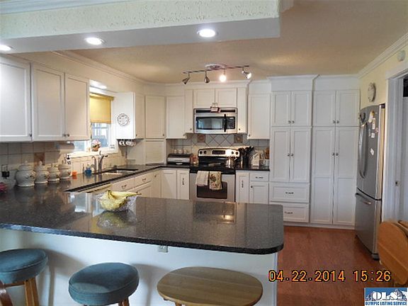 Spectacular mini farm with large move-in ready 3 bed/2.5 bath home in Carlsborg area! Fenced pasture waiting for lavender or animals. Wonderfully paved circular drive with tons of beautiful landscaping. Open floor plan with newly remodeled kitchen with granite counters and stainless appliances, large living room with fireplace leading into dining room with slider going to deck. Huge family room with wood stove also leads out to deck for easy entertaining. Roomy laundry room has tons of storage and 1/2 bath.