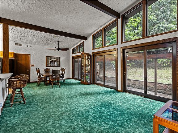 Incredible opportunity just outside of Cranberry Twp! A treed driveway opens to a 2 bedroom 2.5 bath multi level home on just short of 3 tranquil acres with a large pond. Pull into the convenient oversized 3 car attached garage. A set of stairs leads to the basement or enter the door into the kitchen. The great room benefits from a beamed & vaulted ceiling and wall of windows. 3 french doors lead to a stone and tile patio. Head up stairs to find an owner's suite with a stone fireplace and deck overlooking the pond. You will find an additional bedroom and full bath on this floor. A stone fireplace is the focal point of the finished lower level where you will find a wet bar and half bath. A slider leads you to an additional room that opens to the pond. This private retreat is waiting for your vision to make it yours.