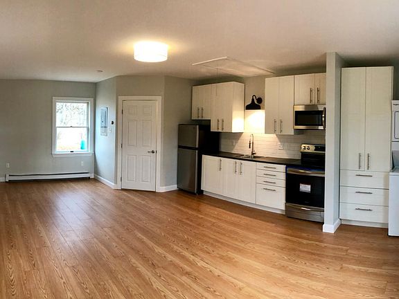**OPEN HOUSE, Saturday May 10, from 11AM-Noon.** Please come check out the space during this time - we will not be able to accommodate tours at other times out of respect for current tenant. After viewing we will share a google form to fill out (free) for an application. Light-filled studio apartment located across the street from the water in quiet neighborhood, with peeks of Portland skyline from apartment and yard. Private side yard, ample parking, private entrance. Newer washer/ dryer laundry in unit. Quiet, efficient heat pump to provide heat and air conditioning. Efficient, eco-friendly design. High ceilings, newer flooring, paint, updated kitchen, stainless steel appliances: full size electric oven/ range with exhaust hood, built-in microwave. Apartment-sized refrigerator/ freezer. Double bowl kitchen sink. Cellular window blinds pre-installed. Built-in wardrobe closet next to laundry. Conveniently placed cable and electrical outlets for tv wall mount or bedside charging. Some extra storage in private attic with pull down ladder. Easy commute to Portland, and just a couple of blocks from Greenbelt Trail and close to nearby beaches, Scratch Bakery, Saltwater Grille, publicly accessible harbor beach one block away. One-year lease term. First month's rent + security deposit equal to one month's rent due at signing. Utilities included in rent: heat, hot water, water, trash/ recycling, electric. TV and Internet are the responsibility of tenant. No smoking, no pets.