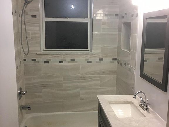 3 generous sized bedroom 1 bath freshly renovated. Large Living room with hardwood flooring. Dining room with low hanging light fixture Kitchen with soft close mahogany cabinetry, granite countertop, brand new stainless steel appliances. Newly tiled bathroom with modern finishes Laundry hookup in the basement and storage One car garage parking Small pet may be okay with additional charge