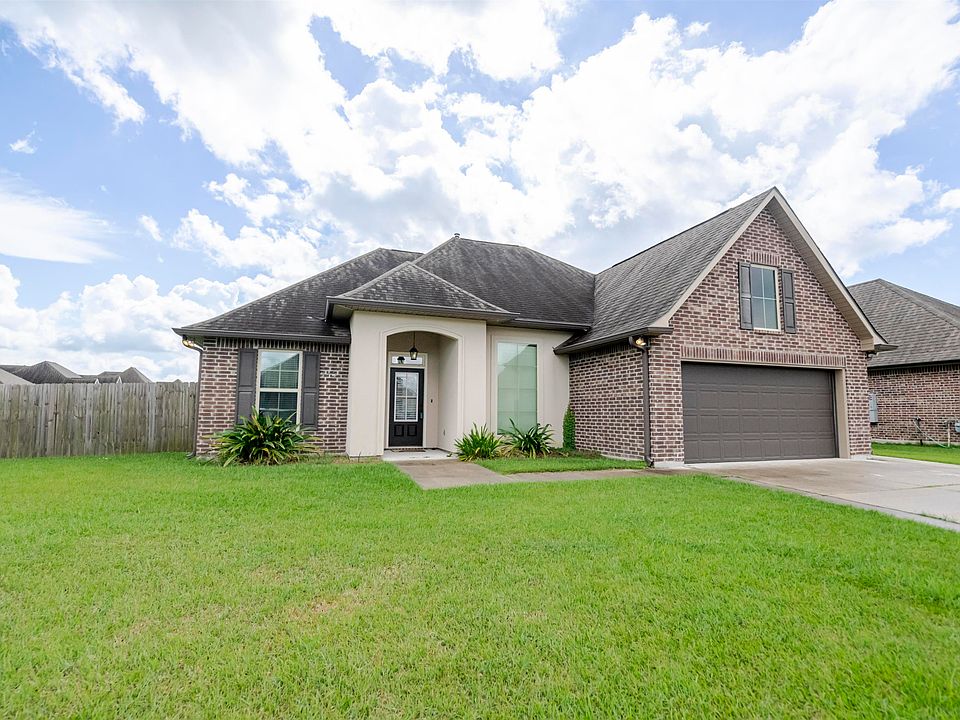 Located on a corner lot in the desirable Highland Oaks subdivision, this 2019-built home offers a smart layout with 3 bedrooms, 2 bathrooms, a flex space, and an office nook—ideal for remote work or study. The living room features a gas fireplace, creating a cozy focal point. The kitchen is functional and stylish, designed for easy meal prep and entertaining. The primary suite includes a soaking tub, separate shower, water closet, dual vanities, and two walk-in closets. The fenced backyard offers privacy and versatility, with a detached shed for extra storage and a double gate for boats, trailers, or equipment access. Enjoy community amenities like two stocked ponds and a shared pavilion. Quick interstate access makes commuting to New Orleans or Morgan City simple. Move-in ready, thoughtfully designed, and perfectly located. Located in Flood Zone X—no flood insurance required. Seller is offering $4,000 in closing cost assistance with an acceptable offer!