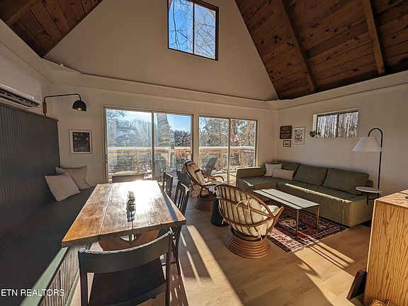 This cabin is the beautiful ''love child'' of an architect and interior designer husband- wife renovation team, and is available as a turn key rental-ready investment or affordable lakehouse. ''Nora's Nest'' looks out over the lake directly across from the Chuck Swan Wild Life Management Area - enjoy that unspoiled view, as it will always be a preserve. Lofted bedrom upstairs with a king bed and floating night tables overlooks the great room under beautiful natural pine tongue-and-groove ceiling, basking in the natural light of full wall of windows. The main level offers a convenient full bath, updated kitchen, dining area and living room that walks out to a full width deck. The lower level has been converted into a spacious bunkroom (two sets of twin bunks), and add an extra hideaway bed or sleeper sofa - this home could sleep up to 8! Enjoy beautiful vistas in every direction as you relax and take in the view from your secluded getaway in the woods. Speedwell is unrestricted, friendly to short term rentals and the lot offers parking for 4-5 vehicles. Close to Tackett Creek trailhead for ATVs, and comes with a transferable leased slip (F-33) at Flat Hollow Marina, an easy cart ride away. STR management options are available, though it hasn't been used as a rental by these owners.