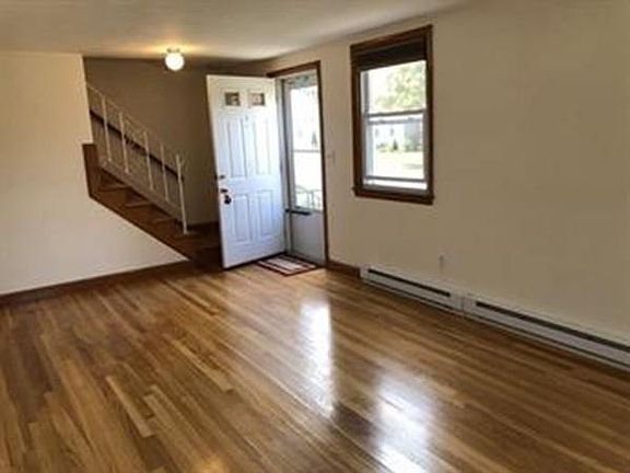 Come visit this lovely two-story townhouse/apartment (Unit 1 - left side of the Duplex) in Needham Heights. The granite kitchen has a tiled floor, stainless steel appliances, nice cabinets and an open eating area. Gleaming hardwood floors. Spacious Living and Dining Rooms. A half bath completes the first level. You will find three bedrooms with hardwood floors and a full bath with a tiled tub and shower on the second floor. Each room has a thermostat to control the electric heat. The basement has one big open room for tenant's use. Tenant pays all utilities, including the water/sewer bill. Driveway can fit 2 cars/tandem. Lead Free Certificate. There is a patio outside the back door for summer barbeques. A large backyard is shared with the duplex neighbors. Located near the Commuter Rail, Route 128, Trader Joe's, CVS and the stores in Needham Heights Square. Pets negotiable. Easy to show.