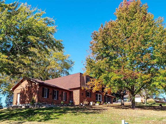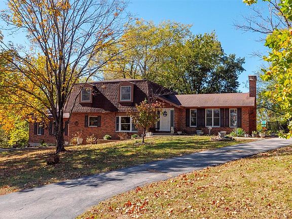GREAT FOR STL COMMUTERS-5 MINUTES OFF I-44. Very well built, full brick, newer mansard roof, at this Modern 1970's multi-level home. Feeling those nostalgic vibes as you're sitting in the large great room w/vaulted-beamed ceiling, brick full masonry-wood burning fireplace, and views to the West to see the sunset, and views to the East for catching the sunrise! However, it's the open staircase that is the center piece of this custom home! Large eat in kitchen-recently remodeled w/quartz countertops and tile backsplash, primary bedroom, 1 & 1/2 baths, and kiddo play area, complete this 2nd level Upper-level features 4 good sized bedrooms or home office, and 1 full bath. Lower 2 levels are currently used for storage, however finishing off the one level into a rec room and opening up the main staircase to access that room, would be awesome! Sought after exclusive El Vallejo subdivision-large lots-mature trees-conveniently located East of town for STL commuters. Great for Holliday parties!