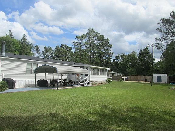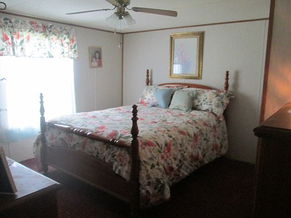 This pristine mobile home has living room, open kitchen/ breakfast, Dining, Den/FP, 4 BR, 2 bath, including Master Suite, spacious laundry. Rocking chair front porch, back screened porch. Detached carports. Storage shed.