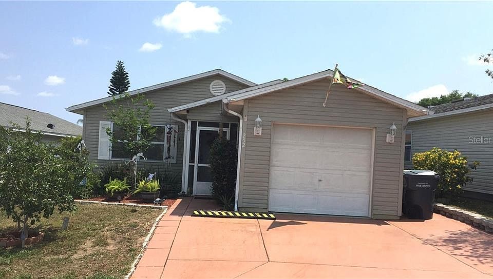 Welcome to your new home, an oasis that doesn't sacrifice convenience. This recently updated home is move-in ready with new floors, recently replaced hot water heater and new air conditioning unit. This is a beautiful, well kept and cared for open concept HOME! From the moment you pull up to the house, with it's double parking pad in front of the single car attached garage, you are greeted by a warm, welcome space with a natural flow. The master ensuite welcomes you at the end of a long day, with the view of the fruit trees and trellis on the back patio. In addition to a second bedroom and full bath in the front of the home, there is an enclosed back patio that allows you to enjoy the outside view, no matter the weather. Contributing to your feeling of being in the middle of your own peaceful space, the back patio is surrounded by producing avocado, mango, and lime trees behind the house and a vibrant, fruitful cherry tree in the front yard. You will be delighted to learn that the home can be so peacefully quiet considering it is moments from restaurants and stores, right next door to a county park with sports and park facilities and only 15 minutes from Disney property and the new Margaritaville Resort. Close to I4 and Toll Road 429, you can easily travel to most areas of Central Florida. Within the gated International Bass Lake community, you will enjoy the amenities of a community that is on the shores of Lake Davenport,. You have private access to the lake with a community boat ramp and dock, two large swimming pools (one of which is heated year round), and jacuzzi. The community also has a locked parcel for residents to store RVs and boats securely. Other amenities include a shuffleboard court, game room and library. All of these amenities are included in the HOA fee, plus yard maintenance and water. This home is designed to be your relaxing getaway. Don't wait, it will go fast!