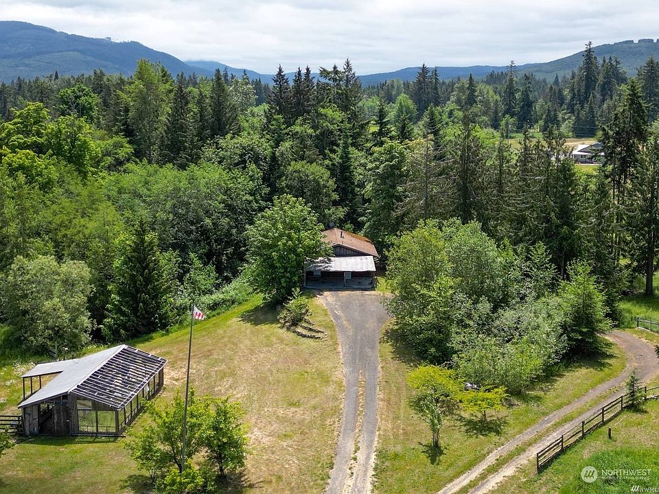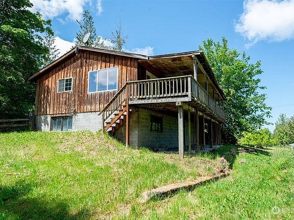 One-of-a-kind property - 3 SEPARATE PARCELS totaling 11 ACRES in a private setting just minutes from Sequim. Main home has attached double carport, open kitchen & living room with doors to large covered deck, primary suite & unfinished basement with utility room, laundry, half bath and potential for a third bedroom. There are two unfinished Cabins ready for you to complete - guest house, artists studio - endless possibilities! Greenhouse, Chicken Coop & ponds! 4 Bedroom Septic services Main Home & Cabin next to pond.