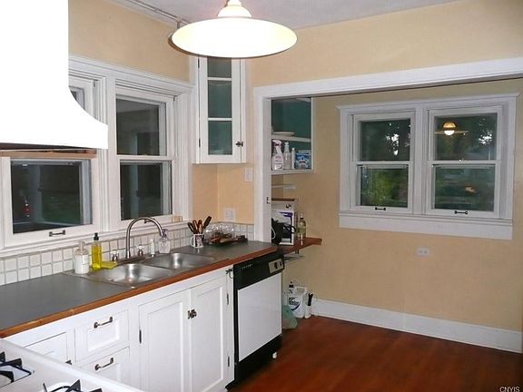 Tucked back on a quiet street very close to SU and hospitals, this charming 3 bedroom home is perfect for an investment portfolio or primary residence! In recent years there have been some notable updates: copper plumbing, high efficiency furnace and HW heater, updated electrical, re-painted exterior, 5 yr old double pane Pella windows upstairs, some new windows downstairs and newer kitchen appliances. The wood siding was repainted 5 years ago and the basement is dry. There is a detached garage that will fit one car and provides extra storage/workshop space. This home emits a ton of character, with its welcoming covered porches, inviting kitchen, cozy den off the living room and 3 season bonus room with wood stove. Flowering trees flank the lot, which is two parcels! Don't miss this one!