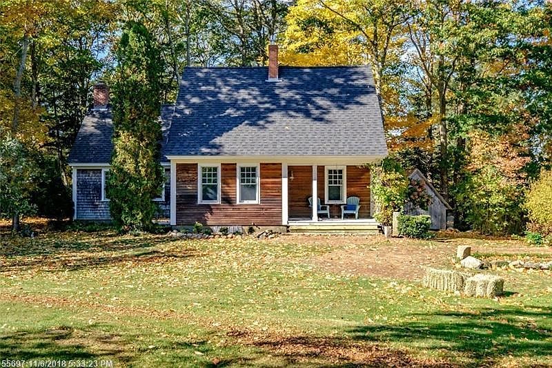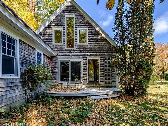 A master boat builderâs cottage lovingly crafted using pine, oak, & cherry woods with custom details throughout. Built in 1986 this home has been recently renovated. There are new windows and a sliding patio door, a convenient upstairs laundry room, 2 bedrooms, a studio and a walk in shower. The wood floors have been sanded and polished. There are three decks that catch the sunlight throughout the day. Two propane fireplaces keep the home inviting and warm in the winter months. The house is set on 1.3 acres of land. This home sits on a peninsula and is near Wolfeâs Neck Farm, the L. L. Bean Paddling Center, and Wolfe Neck Woods State Park. Itâs an ideal Maine location.