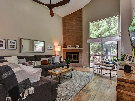 Shows like a model! This beautifully cared for, perfectly updated 3 bedroom, 2.5 ba, 1744 sf modern-style home is set amongst the tall Ponderosa pines in Hidden Valley Ranch. Feels like living in the forest, but just a few minutes away from downtown! Backs up to open space and seasonal stream for privacy. Living room includes impressive fireplace with large windows/sliding doors overlooking the forest. This lovely home includes soothing neutral colors and barnwood-style flooring in all the right places. The kitchen features granite countertops, updated SS appliances, tile backsplash, and refrigerator with french doors. With a large loft family room, good-sized master and 2 guest rooms. Outside, find a large open deck overlooking the trees with plenty of room for bbqs and entertaining!