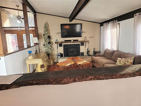 Unique contemporary stone accented ranch boasts over 2200sf of living space! Beautifully upgraded in a modern farmhouse style, this 3 bedroom 2 bath is enhanced by refined open concept living spaces! With accents of wood elements and earthy, nature inspired tones throughout, you'll love the sleek touches in the living room with fireplace and wood beamed ceilings, stylish equipped kitchen with plenty of cabinet and granite counter space, rich wood and accent tile flooring, cozy 4 season room opens out to the backyard, den/home gym, main level laundry and a lovely backyard sculpted for outdoor entertaining with Pergola and firepit! Attached garage, too! Embrace the rustic warmth and charm that celebrates the design of this home's true ranch living! See this place today!!