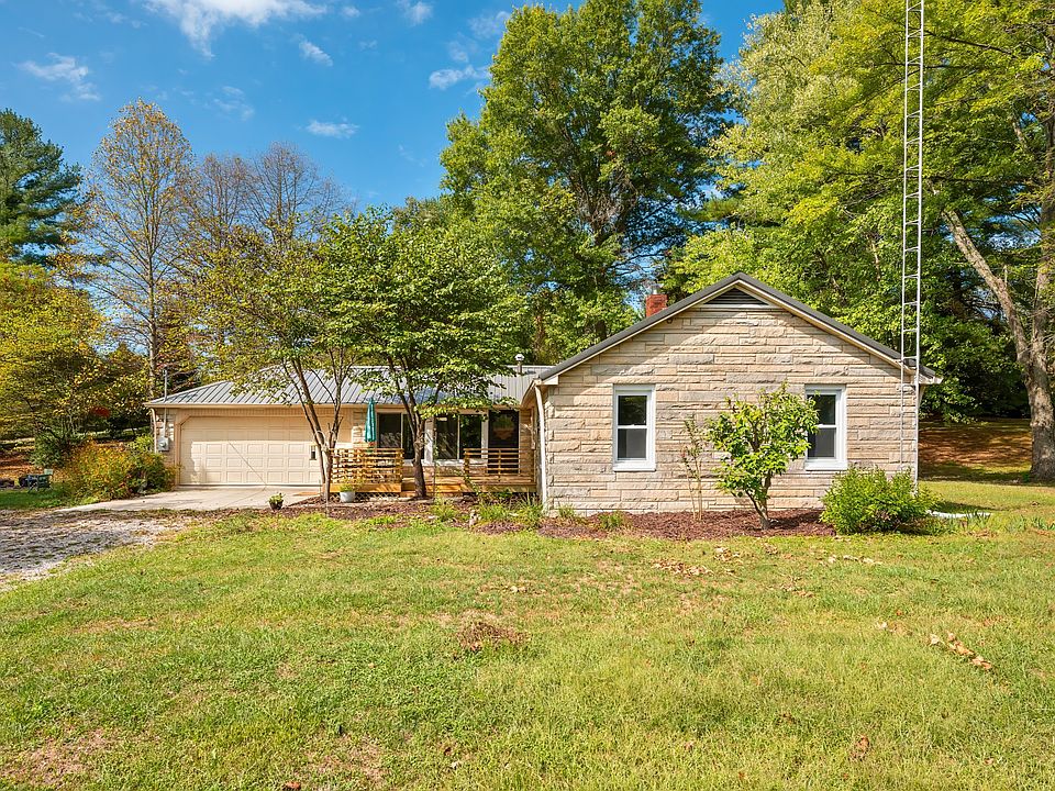 This charming limestone ranch is set on 1.12 acres of land, ideally positioned between Columbus and Nashville, just a short drive from I65. The property has a newly installed septic system from 2023, added attic insulation, and a fresh silicone roof over the sunroom. As you step inside, you'll be greeted by a mid-century modern ambiance featuring a double-sided gas fireplace, original hardwood floors, a galley kitchen, and a spacious dining area. The home includes two bedrooms both with hardwood flooring, and the sunroom at the back offers a perfect spot for a reading nook or an artist's studio. The basement presents a blank canvas for you to customize according to your preferences. It has the washer and dryer along with a full bath, while the remaining space could transform into a theater room, game room, man cave, toy room, additional family room, or simply serve as extra storage-the possibilities are endless! Don't overlook the convenience of the two-car attached garage! This well-maintained limestone ranch with a metal roof is eagerly waiting for you to make it your home!