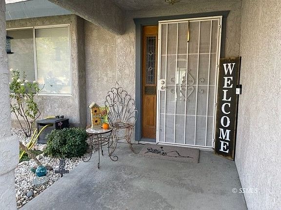 This is a beautiful two story home in the Eastridge Estates. Features a front covered patio. Through the tile entryway, step down into the spacious living room with a rock fire place. Downstairs has a master bedroom. The kitchen has tile counter tops and lots of cabinets. The dining room leads to an enclosed patio with skylights. This 4 bedroom 2 bathroom home also has an upstairs master bedroom with a single french door which leads to a nice deck with a spiral staircase going into the large backyard. One of the guest rooms has double french doors leading to its own balcony. The upstairs hall looks over in to the living room. Also featuring a landscaped front and backyard with various cactus, yucca and palm trees, a cement patio, covered and uncovered, and 3 storage sheds. Home has a 2 car garage with opener, with its own cooling & deep sink, and also comes with an attic ladder. Inside of home was freshly painted and all door knobs and hinges are newly replaced. All bedrooms have new ceiling fans. Make your appointment today to view this beautiful home!