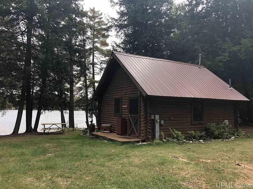 Cute and cozy log cabin nestled in the Hiawatha National Forest. Overlooks all sport spring-fed Stoner Lake with 175' of frontage. Beautiful high and dry 10-acre parcel with a pond in the back acreage. Cabin has a metal roof, high-speed internet and phone, newer well, water heater and furnace. Loft space has room for multiple beds. Two sheds for all your outdoor tools and storage. Close to ATV and snowmobile trails. Turn key and ready to enjoy! Current road access is year-round. Sign of deer and other game throughout the property and surrounding area.