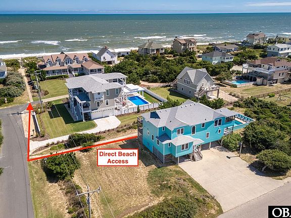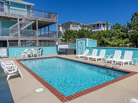 Welcome to 'Rumor Has It', an expansize 7 bedroom coastal retreat, situated on almost a half acre corner homesite just 3 lots off the Oceanfront in Southern Shores.  This property is located in a highly sought after area on Ocean Boulevard, tucked off the main highway with direct beach access (approx. 300' to the Ocean!) and no major road to cross to get to the Ocean.  Each of the 7 bedrooms boasts a private en suite full bathroom for ultimate convenience and privacy.  The top level offers a spacious and open floor plan with 2 dining areas that seat 10 ppl each, a grand living area with Ocean views, and a light and bright kitchen with granite counters, and an island with breakfast bar.  The top level also offers two King primary en-suite bedrooms, a workstation nook, access to a lovely screened in porch, and spacious sun decking with more Ocean views.  The mid level features a fun and convenient Rec Room with TV, Pool Table, and Kitchenette.  There are 5 additional bedrooms on this level including another King en-suite, 2 Queen en-suites, and 2 Bunk rooms also with en-suite full baths. Enjoy seamless indoor-outdoor living from the extensive covered and sun decking, to the 14x28 custom concrete private pool, which is ideal for cooling off after a fun day at the beach.  The opportunities are endless with the expansive carport area where you can set up corn hole, picnic tables, or add a ping pong table, and it even offers the possibility of a future enclosed ground level entertainment area. The entire property is located in an 'X' flood zone, so no flood insurance is required.  Not to mention, you will enjoy miles of walking/biking/running trails throughout Southern Shores, and the optional Southern Shores Civic Association offers a community marina with boat launch, sound front park and playground, tennis courts, and over 30 private Ocean beach accesses ... all for just $70/year! The owners have taken great care of this home with recent updates including: New Fortified Roof '24; New Hot Tub '24; New Exterior Paint '23; New outdoor Polywood furniture and more! See the full list of improvements in associated docs and click on the virtual tour link to view the house floor plans!