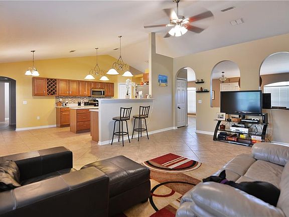 Expect to be impressed with this charming 4BR pool home. You will be impressed from the moment you arrive â meticulously manicured lawn w/nice landscaping. Step inside to your open formal living and dining space that runs across the front of the home. Vaulted ceilings give the space a roomy and bright feel. Step on back to the heart of the home where youâll find your family room and kitchen. Gourmet style kitchen boasts an abundance of counter and cabinet space, island with secondary sink, two sizeable pantry closets, stainless appliances and eat-in space with French door access to the pool deck. Split bedroom plan with master suite off the living room â ideal for privacy. Oversized bedroom â room for sitting area or private desk, his/hers walk-in closets and contemporary master bath w/dual sink vanity, soaker tub and separate shower. Remaining bedrooms tucked off the hallway just outside the kitchen. Youâll appreciate the easy to maintain flooring throughout â ceramic tile in common areas and wood laminate in the bedrooms. One reason youâll want to own this home is all that you have out back. Expansive covered lanai and pristine solar heated pool under screen enclosure. Your backyard fronts conservation area so you have extra privacy to enjoy your relaxation or entertainment time. This home shines, both inside and out â come see all that it has to offer!