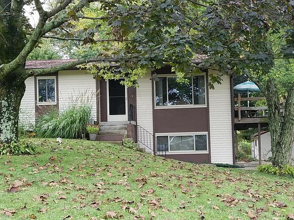 Well loved raised ranch with many upgrades on nearly a half acre, park like setting. Upgrades include newer kitchen, bath, insulated windows, pressure tank, water heater in 2009, roof in 2003. The huge wrap around deck adds a lot of extra area for entertaining and the skylight in the bathroom adds extra natural light. The lower level includes the 2 car garage, a den/family room, and a storage area. There is also a working toilet in the basement, so a fully finished bathroom is probably possible. Laundry is on main level. This home would make a great starter or one to downsize into. Licking Co Auditor site has the total finished Living Area as 1820 sf, the Main level is 1248 sf. HSP Home warranty already in place.