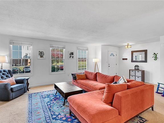 Welcome home to the beautiful 3 bdrm 2.5 bath townhouse in the Trotwood Acres Community of Montour SD. Located only a half mile from the Montour Trail, the home w/ central AC and Ring camera doorbell sits on a quaint circle in a friendly neighborhood. Enter the home to the foyer & oversized LR full of natural sunlight. The main floor is perfect for entertaining with an open floor plan which includes a convenient half bath. The DR w/ large glass sliding doors to the back deck is combined with the kitchen totaling 26'x13'. Beautiful kitchen w/ Quartzite leathered stone counter tops, matching appliances, island with stools, & large double door pantry. Upstairs consists of the primary suite w/ master bath & walk-in closet, 2 additional bedrooms and the 2nd full bath. The basement has high ceilings perfect for finishing the space to create additional living adjacent to the dry 2 car integral garage.