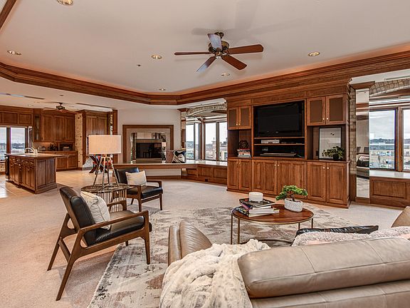 First time offered, this extraordinary penthouse in the Forsland building features a brilliant floor plan like none other, with over 2600 sq ft of open living space & spectacular serene west & southern views of the Grand River and downtown Grand Rapids. Expansive living room/dining room w/multiple bay windows overlooking the river's edge flows into the spacious eat-in kitchen perfect for entertaining. Primary suite adds a walk-in closet, office & attached laundry room.Third bedroom is currently used as a den.Quality abounds throughout w/custom woodwork, built-ins galore, tray ceilings, transom windows, 2 gas fireplaces, fabulous lighting & much more.Enjoy the views of this premier location from the rooftop patio.Two deeded underground parking spaces in the attached garage is a huge plus.