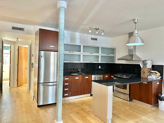 Sprawling 1800 sq ft 3 bedroom, 2 bathroom featuring two large bedrooms on upper level Large open space + 2 rooms on lower level (one with a window that can be 3rd bedroom) private terrace Kitchen Island w stainless steel appliances + dishwasher
