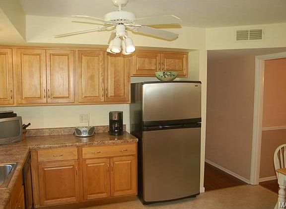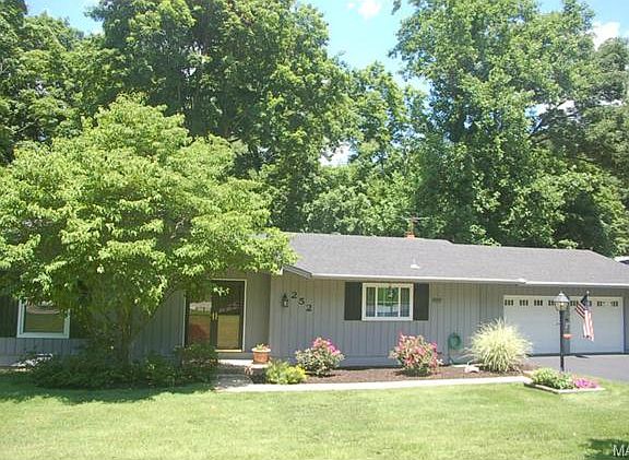 OPEN Sunday 2:00 to 4:00 Come see this home with the Four Seasons Sun porch overlooking trees and common ground. The lower level walk out features a Master Bedroom suite, 4th Bedroom and large family room. This Chesterfield home has a stylish pottery barn look. A beautifully updated and meticulously maintained 4 bedroom Ranch with a completely finished basement and wood burning fireplace. Double door entry with peg and plank flooring welcomes you into the entry foyer. Kitchen includes ample cabinets and storage, many stylish updates and improvements. Warm and glowing hardwood flooring. Six panel doors. Separate HVAC systems for up and down stairs. Gutter covers, newer large garage doors. Pool and tennis courts available for membership. Located near highways, shopping and restaurants. Close to Creve Coeur and Faust Parks. The lot adjacent to the property is a No Build on common ground to be used for your outside fun and games. Hot tub in as is condition with no implied warranty.